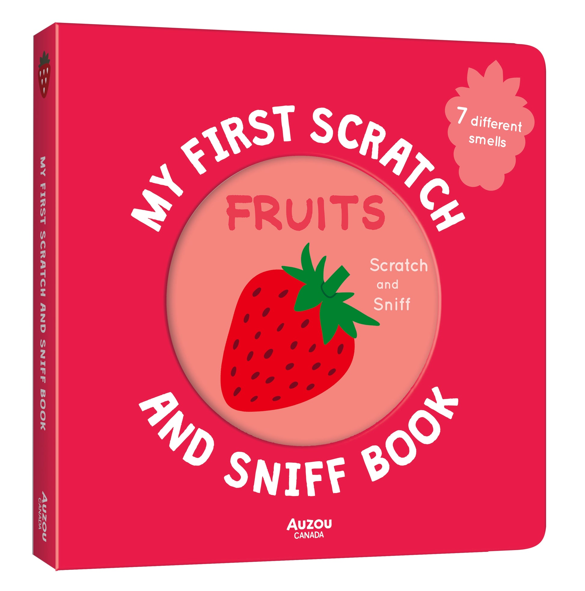 A beautiful and sturdy cardboard book with 7 different items to scratch and sniff! Each page is a different colour, with several items to identify and a fruit hidden under a flap that you can scratch and sniff to guess the scent before lifting the flap to see if you were right!